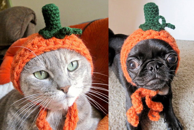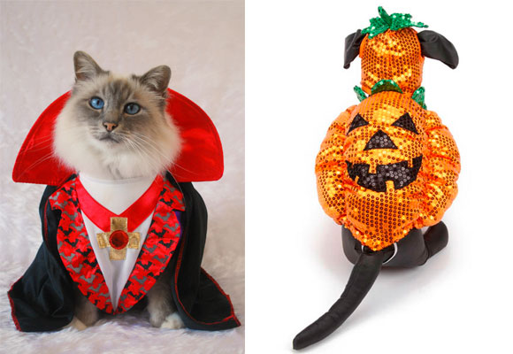 8- Gato y perro disfrazados de calabaza