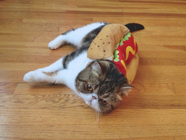 2- Gato haciendo de perrito caliente