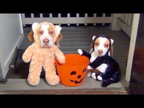 5- Dos perritos haciendo truco o trato